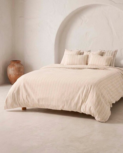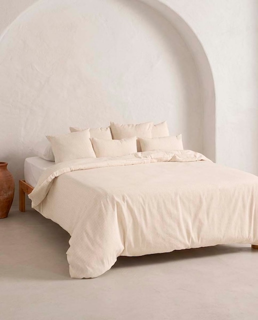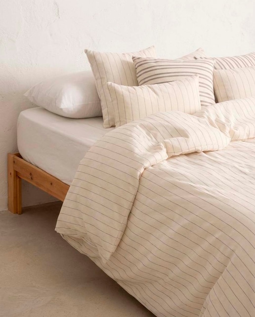 Tanto si te apetece estrenar sábanas y sábanas bajeras a juego, confeccionadas en 100% algodón, como si necesitas nuevas fundas de almohada que combinen con tu colección, esta selección es perfecta para ti. Diseños de aire atemporal de la mejor calidad para llenar de elegancia y frescura tu dormitorio. También puedes completar tu compra con un cálido nórdico ahora que se acerca el frío y las bajas temperaturas amenazan con desvelarte. Para que el descanso sea perfecto, también puedes aprovechar la oportunidad para cambiar tu almohada y escoger una que te ayude a dormir con una buena postura. Textiles con estilo en la web de Primeriti.