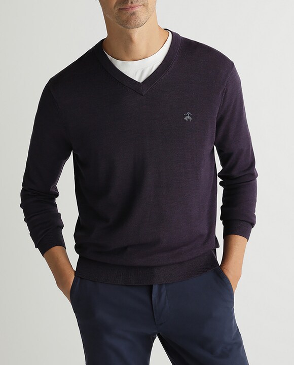 Jersey de lana de hombre morado con el cuello de pico