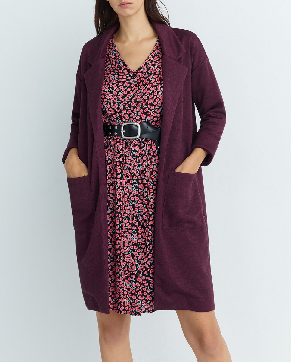 Abrigo ligero de manga larga y cuello de solapa de mujer