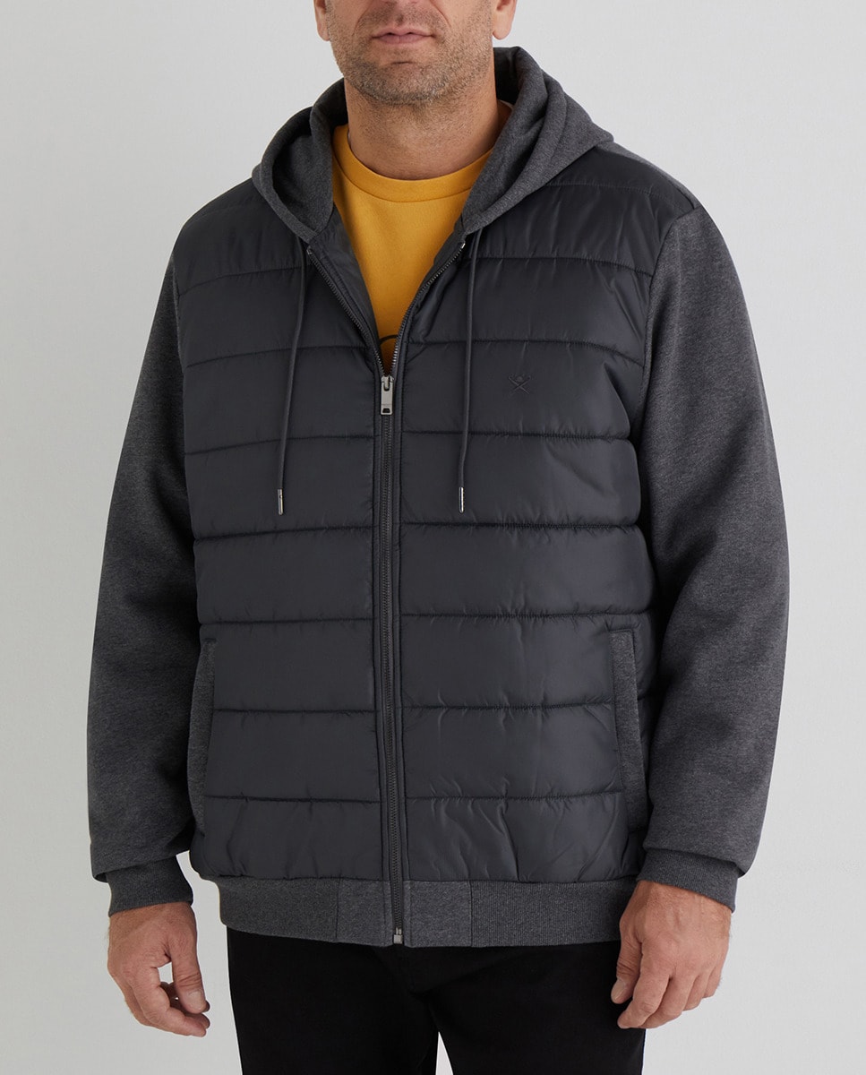 Chaqueta deportiva de hombre hibrida con capucha gris tallas grandes