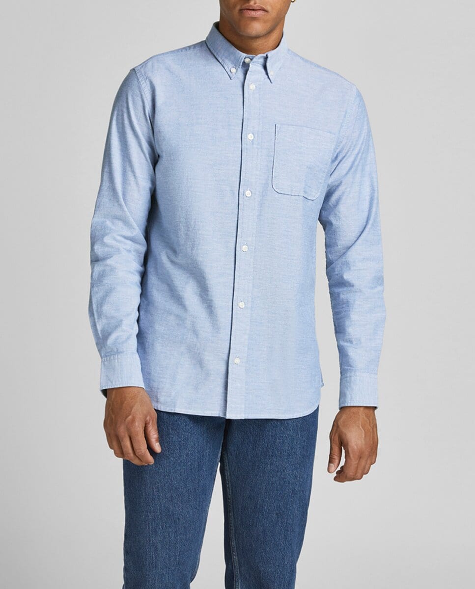 Camisa Oxford de hombre con algodón orgánico slim lisa azul