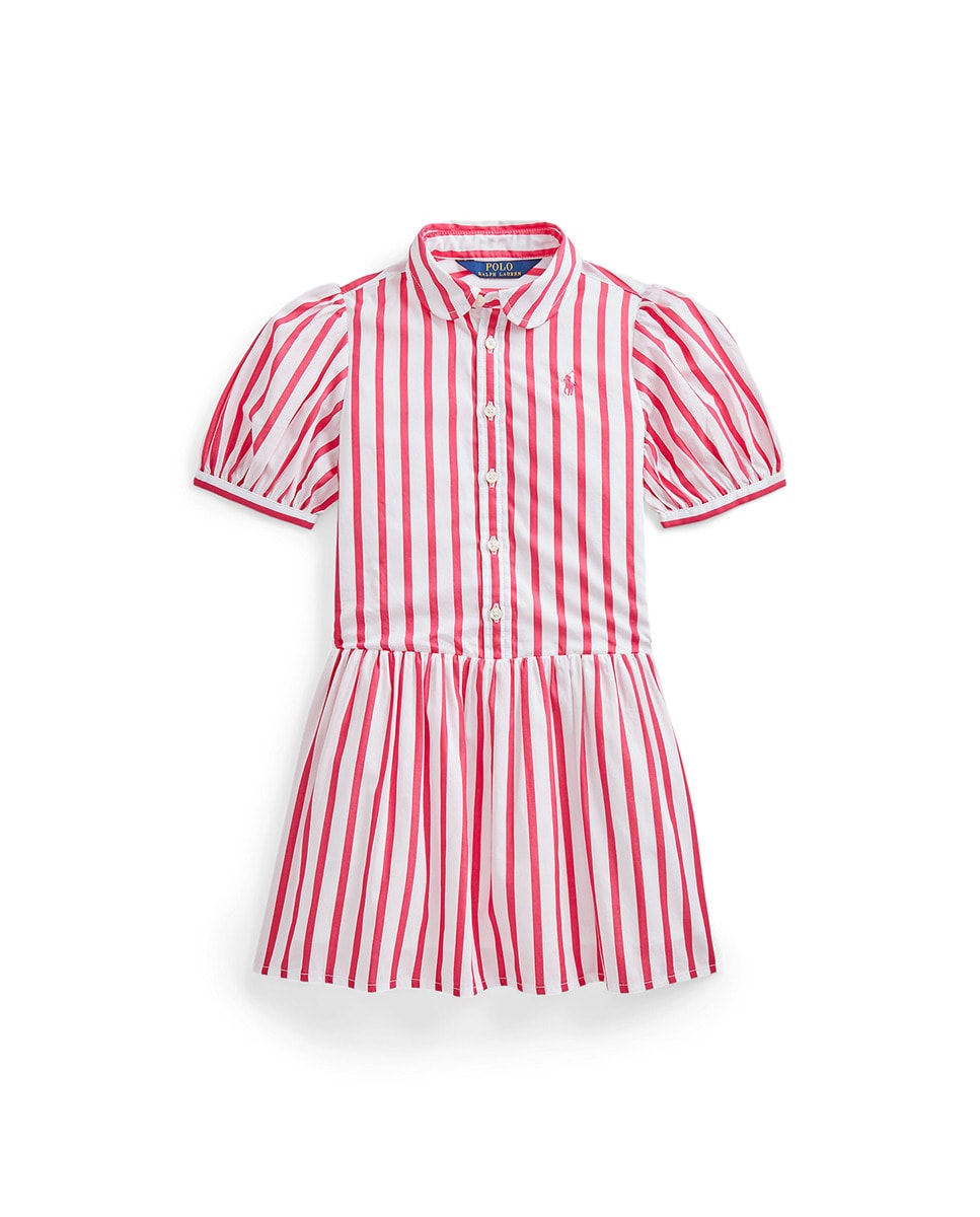 Vestido camisero de niña a rayas en rosa