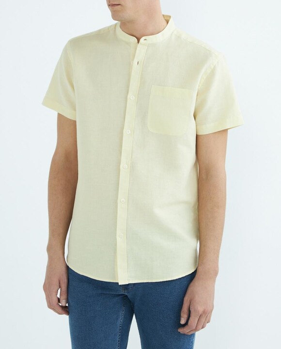 Camisa manga corta de hombre de lino y algodón cuello mao