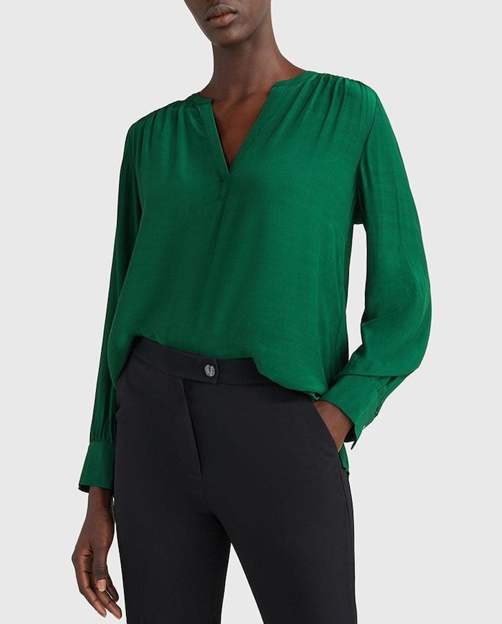 Camisa de mujer de cuello pico y manga larga
