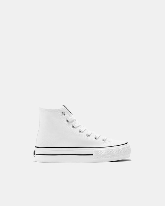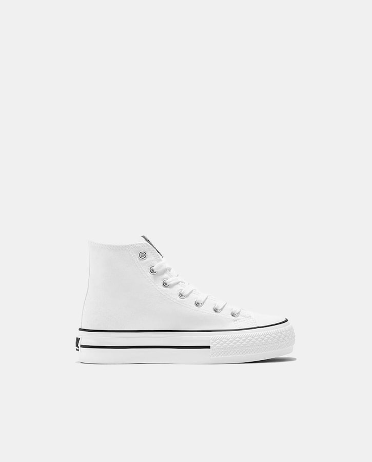 Zapatillas de niña tipo casco altas de lona con suela volumen y cierre de cordones