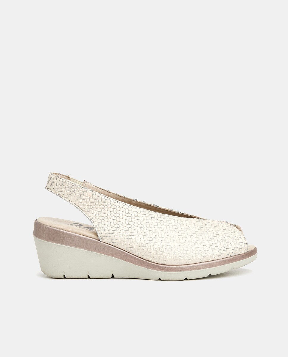 Peep toes de mujer destalonados en piel con cierre elástico y cuña