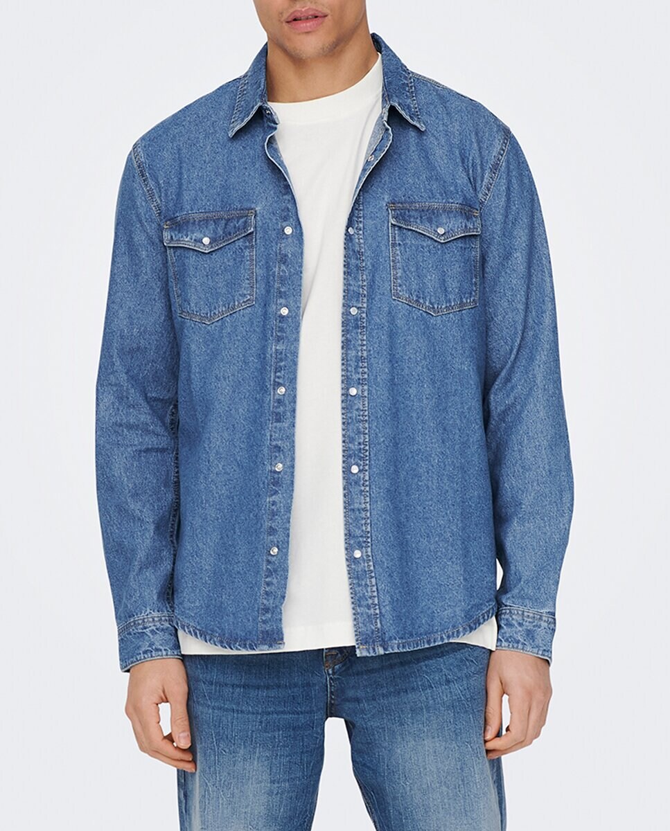 Camisa de hombre vaquera de manga larga