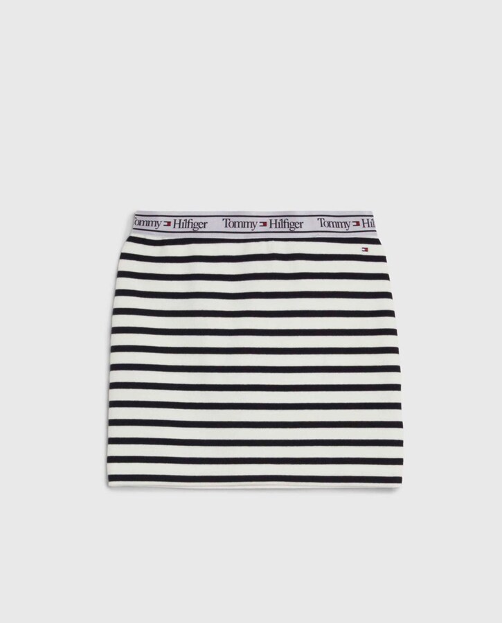 Falda de punto a rayas con cintura elástica con logo Tommy Hilfiger