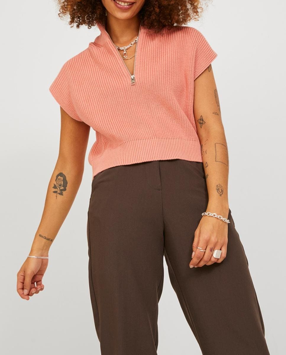 Chaleco de punto con cremallera de cuello subido de mujer.