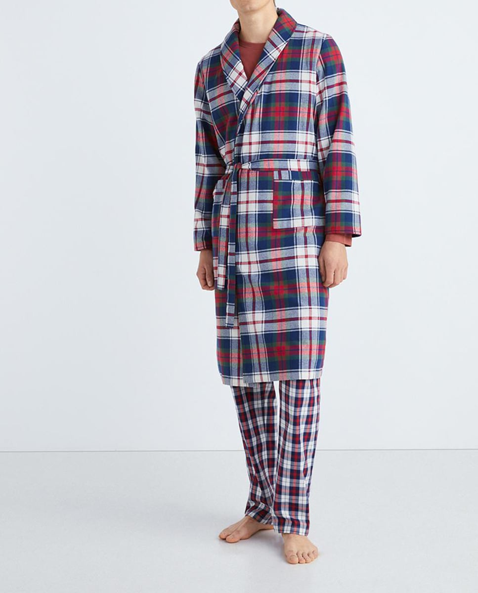 Bata de cuadros flannel forrada de hombre