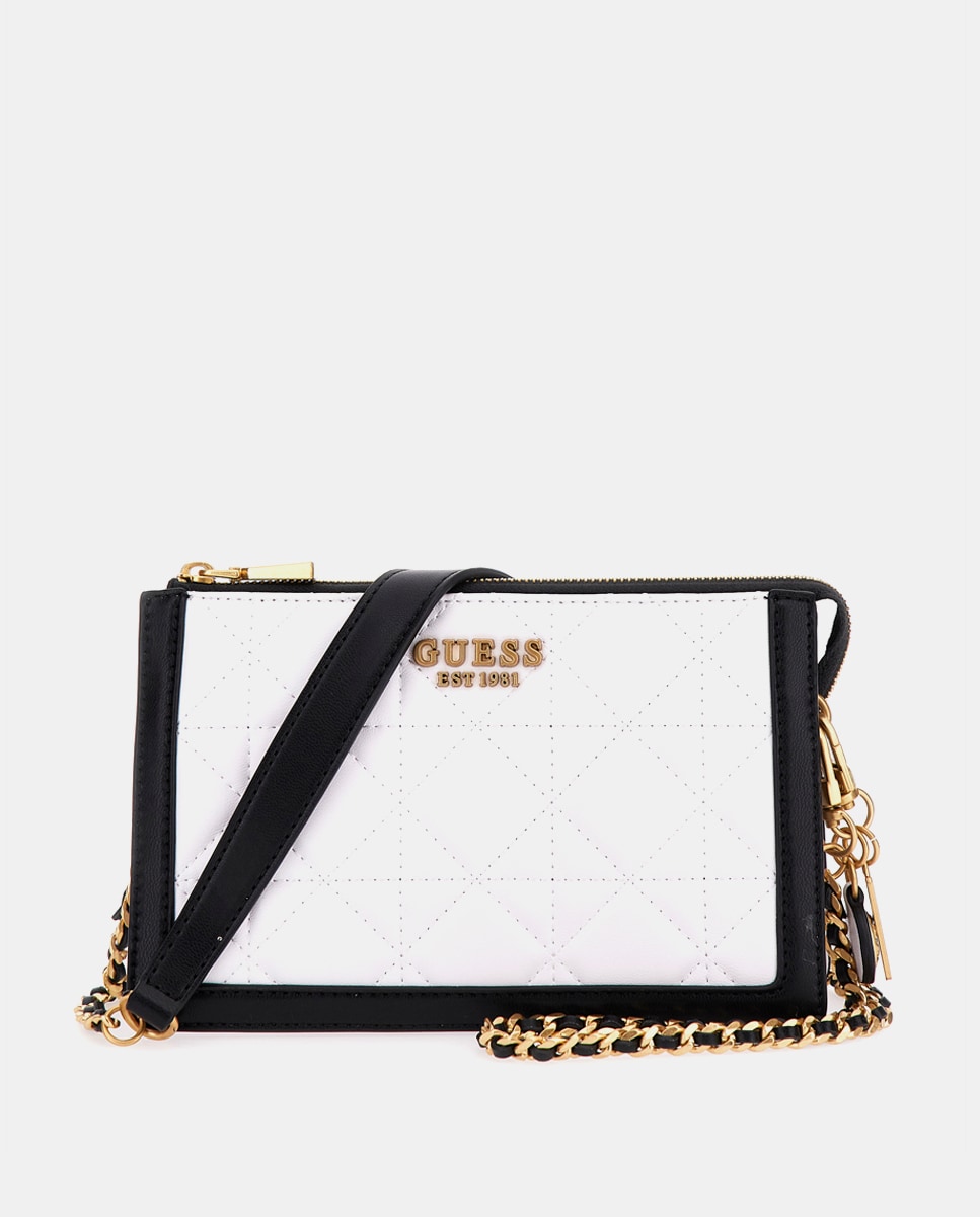 Bandolera pequeña Abey bicolor en blanco y negro con cremallera