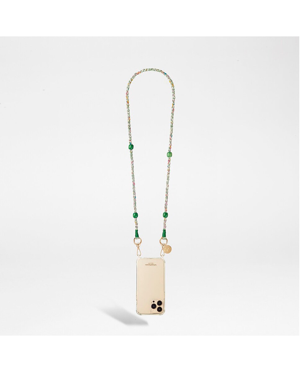 Cadena de bisutería Elia La Coque Française de 120 cm de largo con flores verdes cuentas de madera verdes y mosquetones dorados