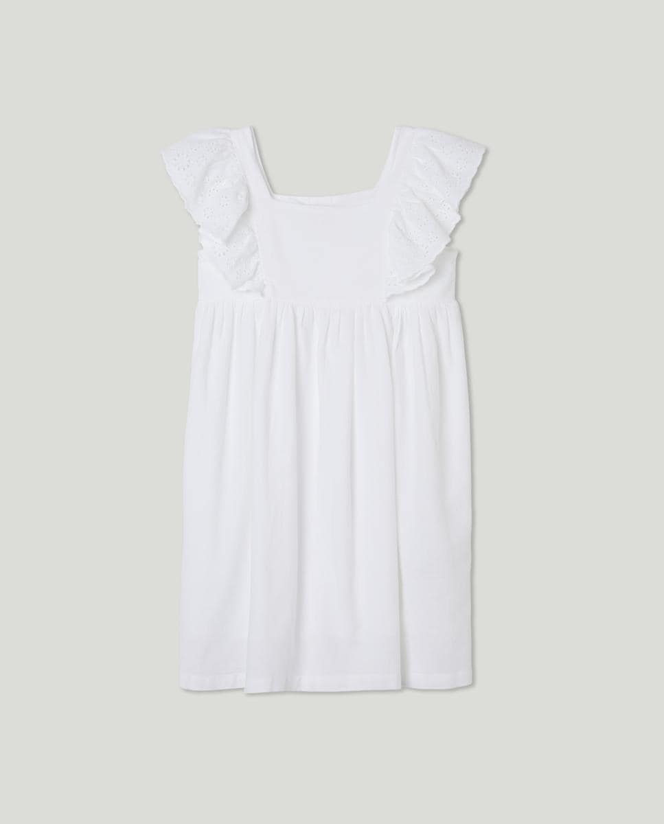 Vestido con lino manga schiffli