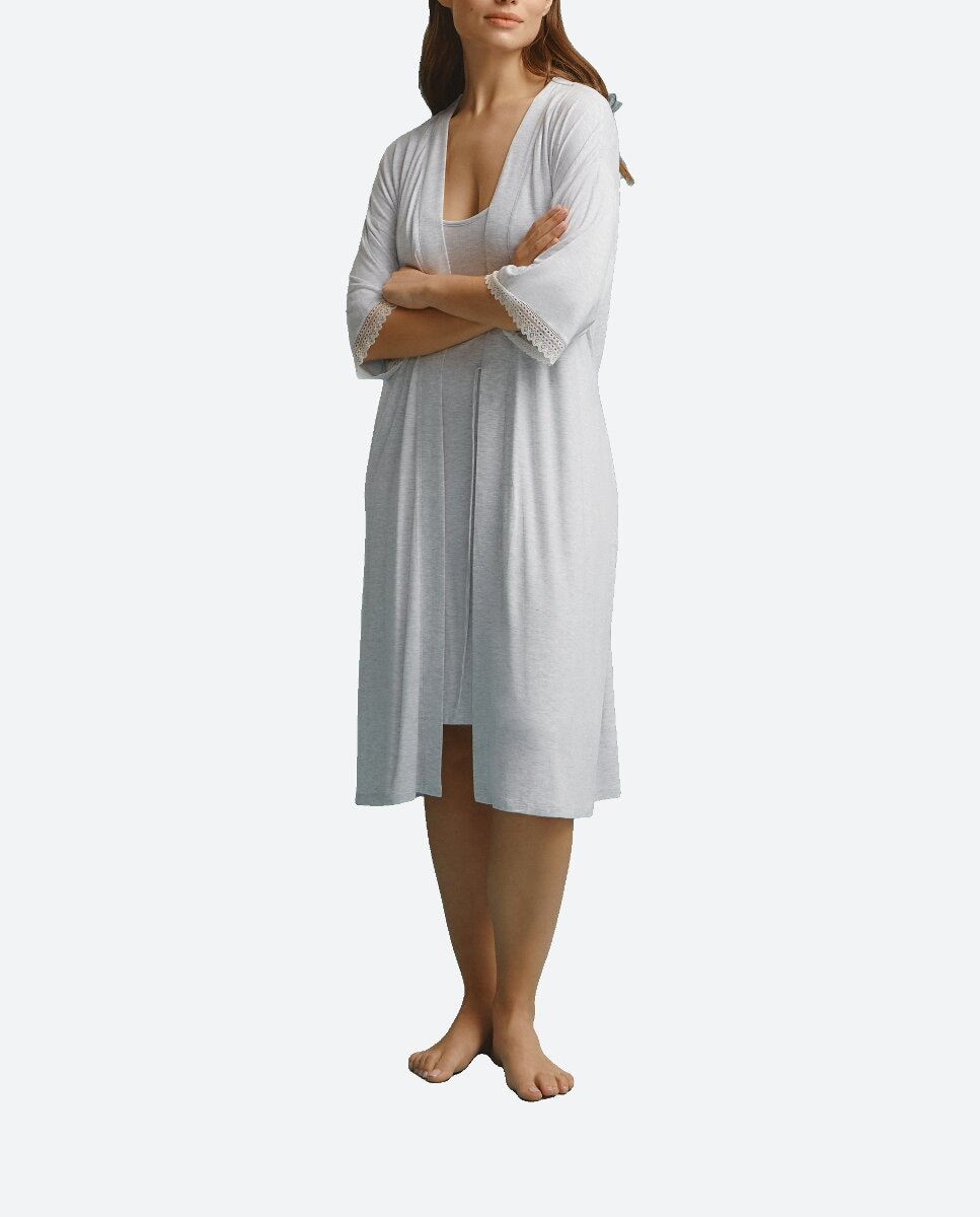 Bata de mujer cruzada con encaje en mangas