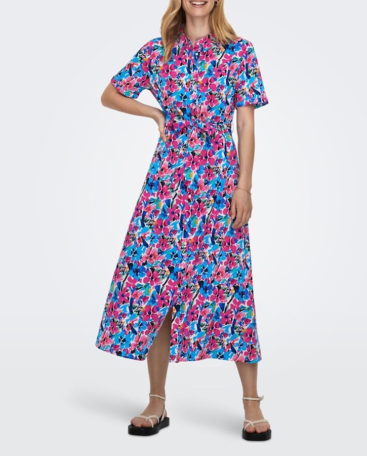 Vestido largo camisero de manga corta