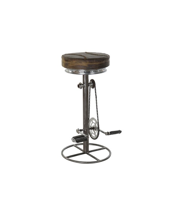 Taburete metal cuero 44x41x82 pedales marrón