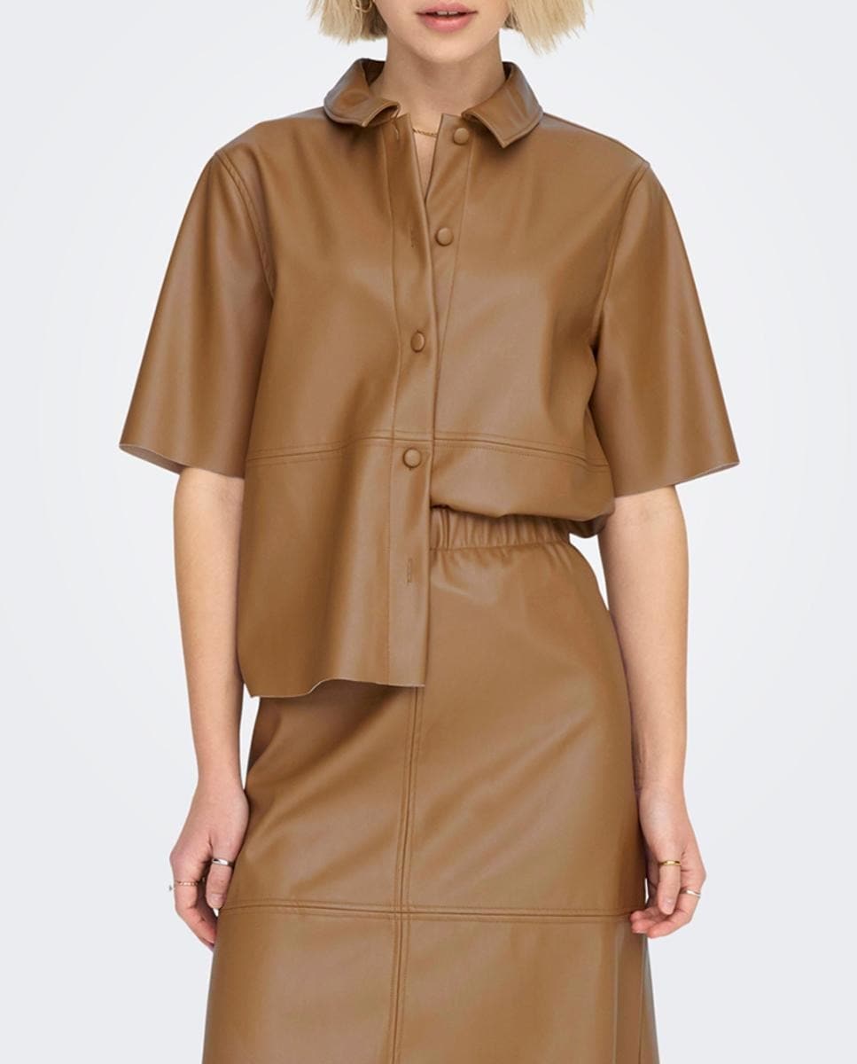 Camisa de mujer de polipiel de manga francesa ancha