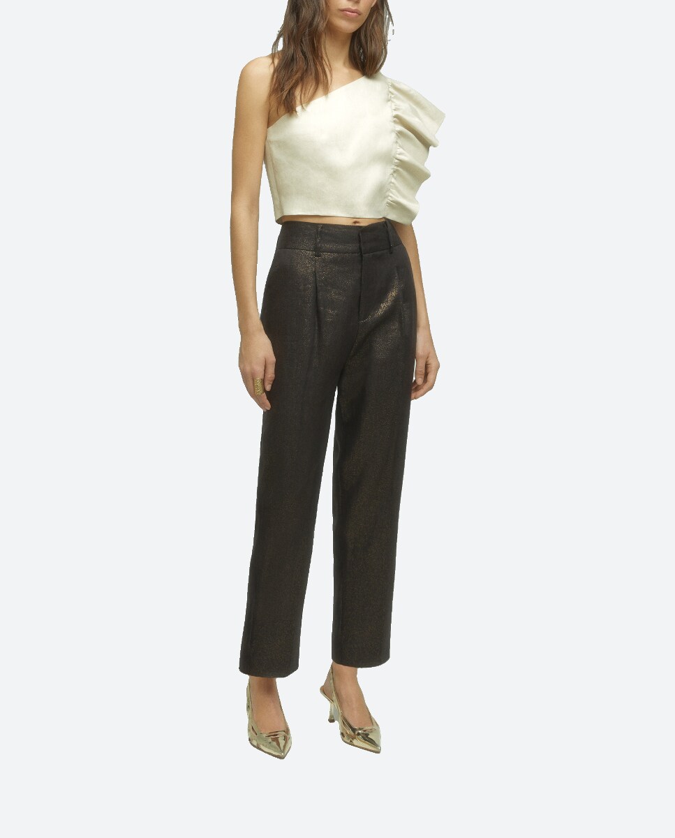 Pantalón de mujer laminado con cinturón