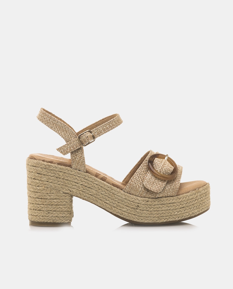 Sandalias de mujer en textil con plataforma y tacón bloque