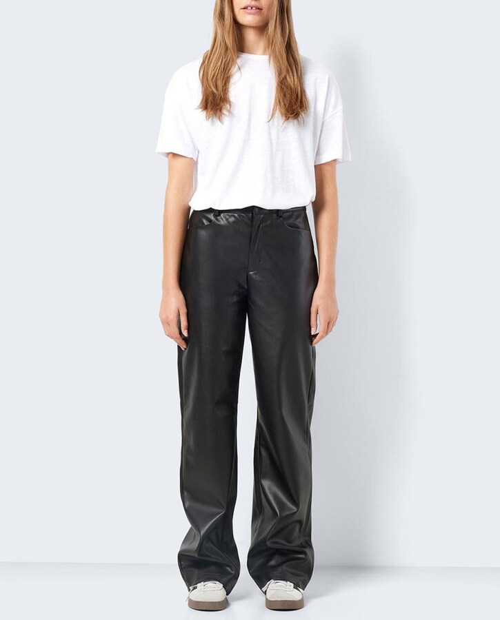 Pantalón de mujer polipiel de pierna ancha.