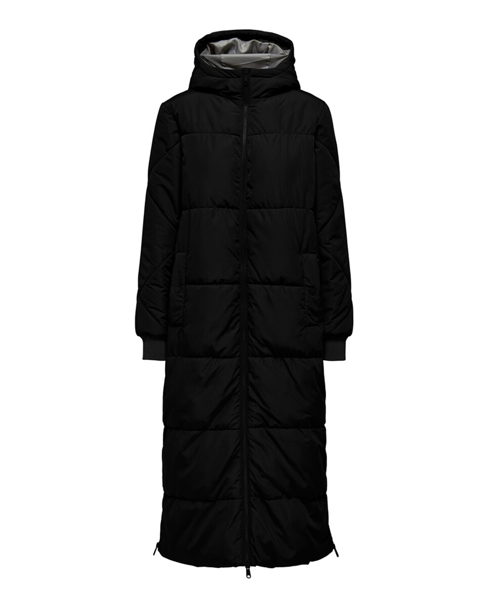 Plumífero de mujer extra largo con capucha
