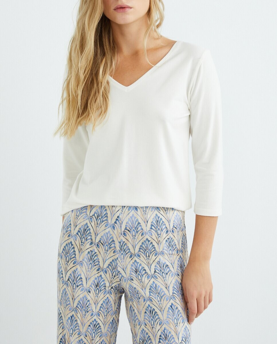 Camiseta de manga 3/4 y escote pico mujer