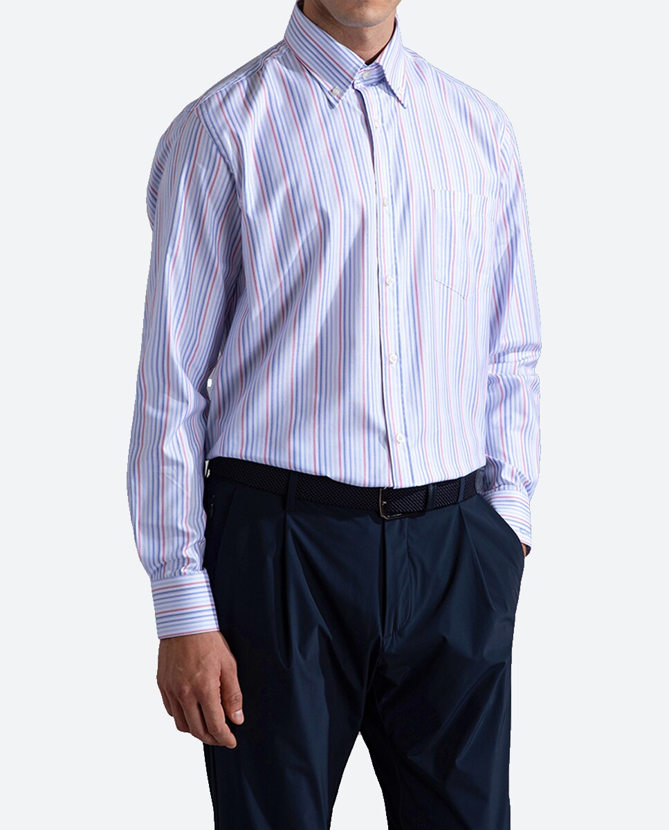 Camisa de hombre manga larga botón punta rayas