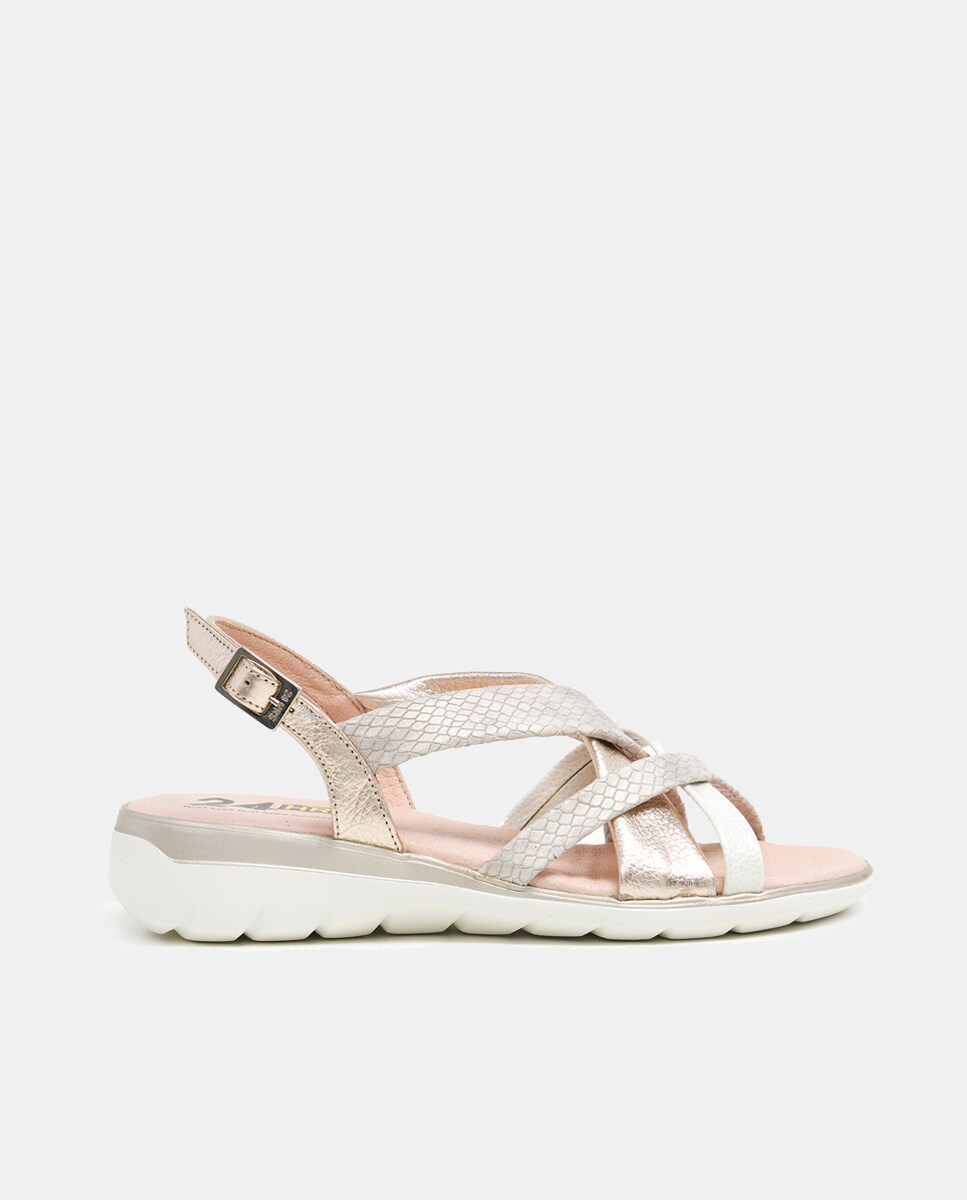 Sandalias planas de mujer en piel tiras tubulares