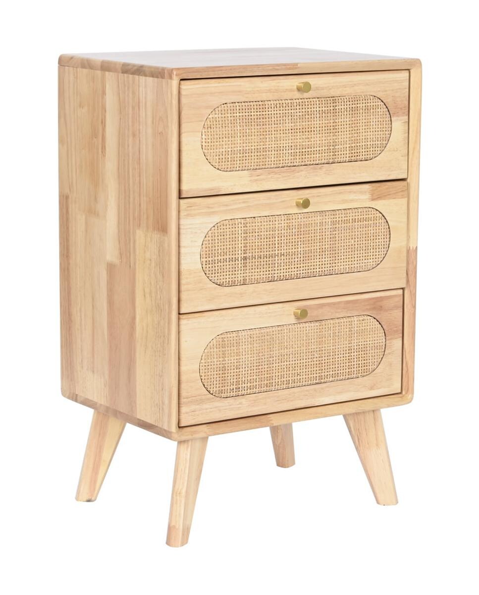 Cajonera madera de caucho ratán 40x30x63 natural