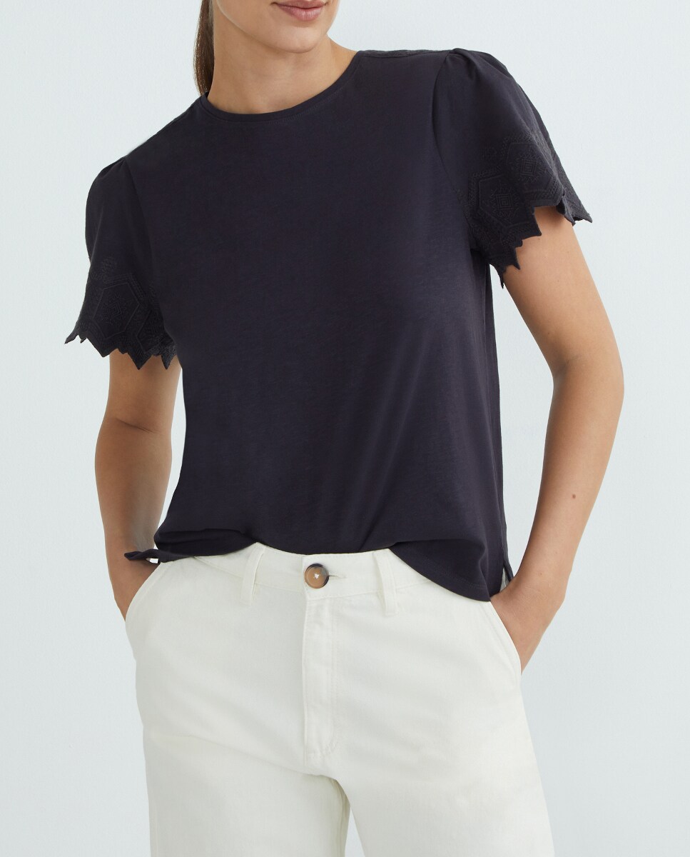 Camiseta Mujer manga bordada