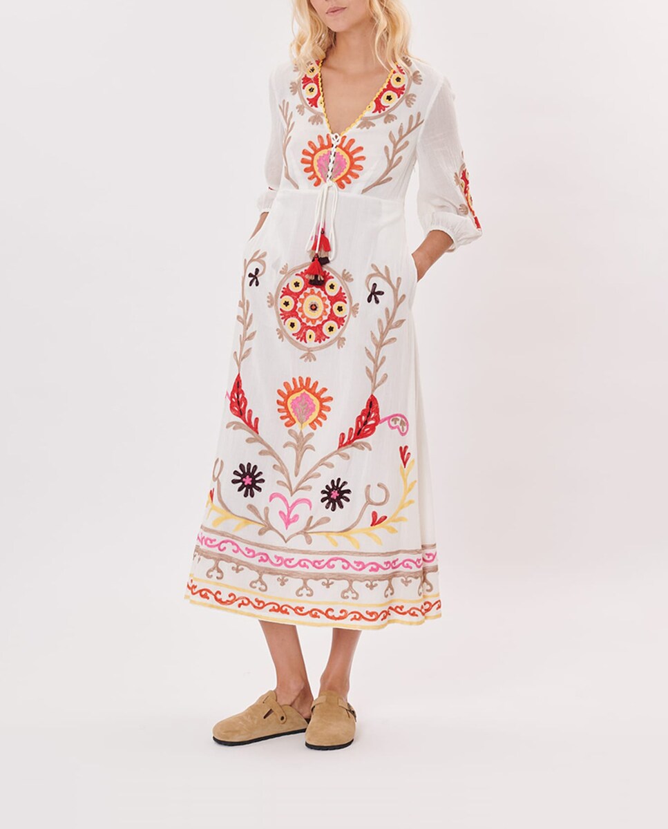 Vestido de mujer midi con escote pico y manga francesa.