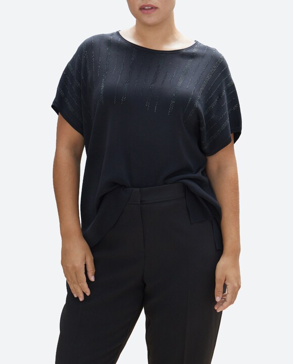 Jersey de mujer cuello caja manga corta crepe brillo