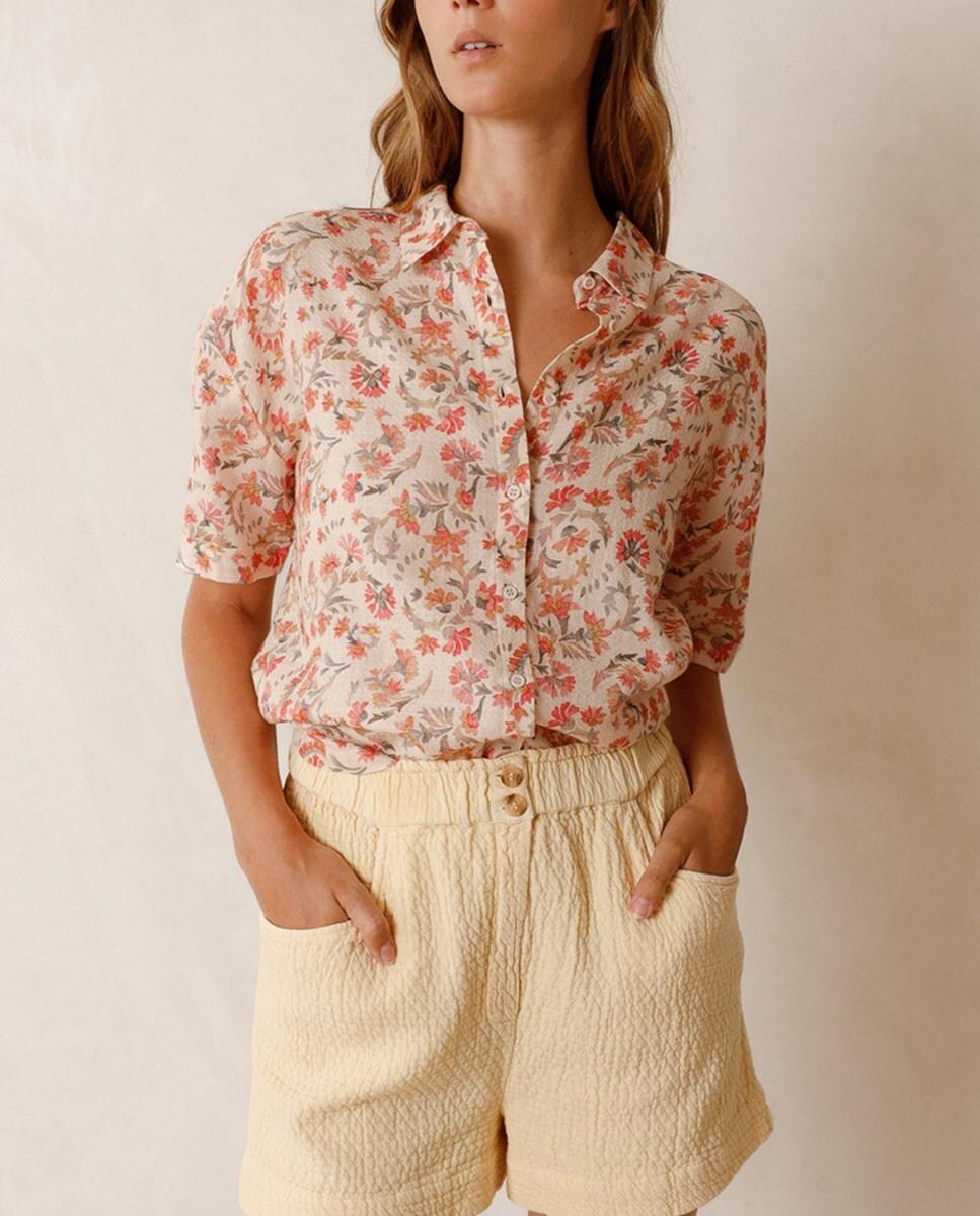 Camisa de mujer cuello camisero manga corta