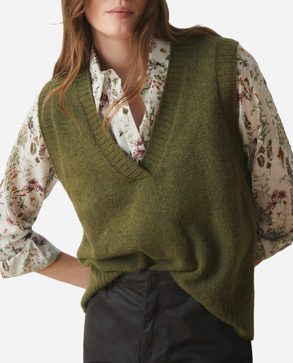 Chaleco de punto con escote de pico de mujer