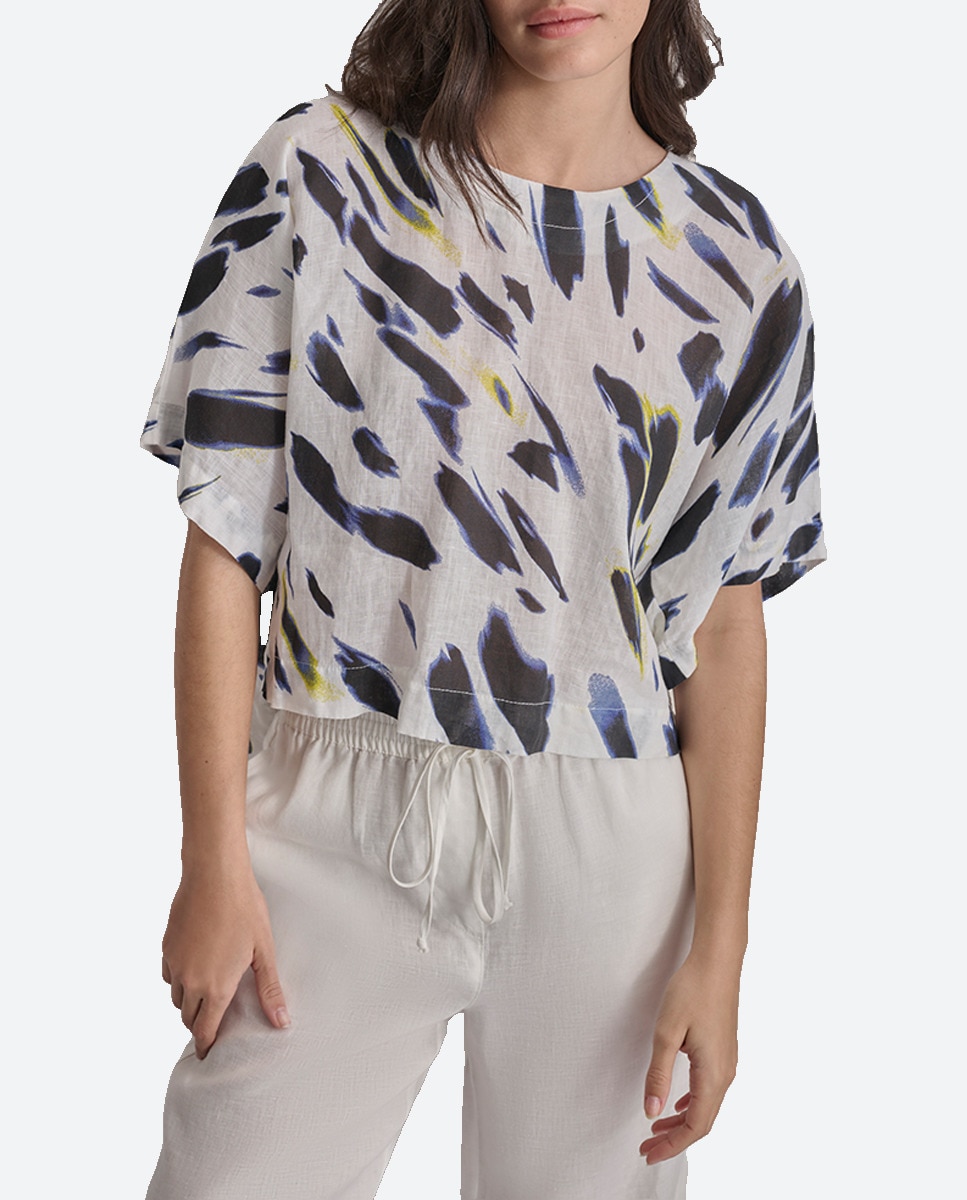 Top con cuello redondo y mangas cortas