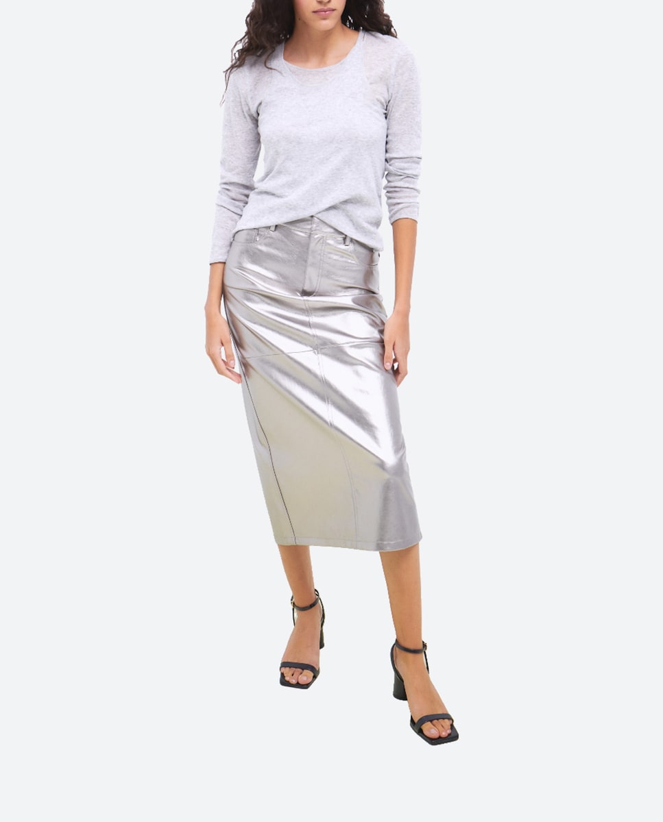 Falda midi efecto piel