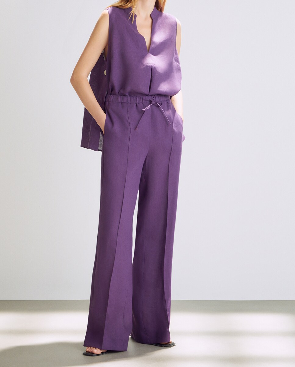 Pantalón de mujer ancho largo fluido de gomas