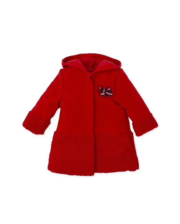 Abrigo de niña en rojo de paño con capucha