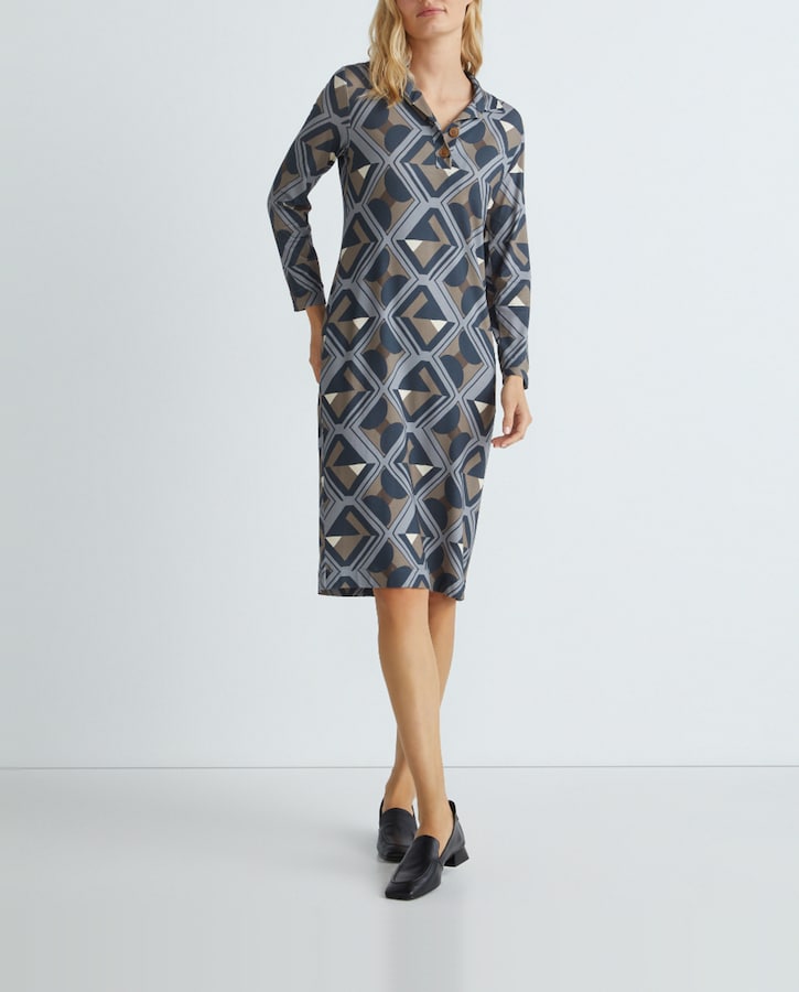 Vestido midi de manga larga y cuello camisero