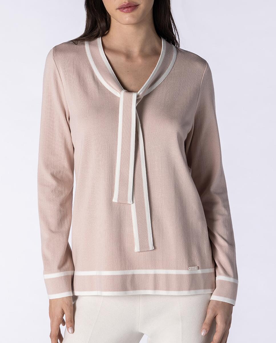 Jersey de mujer de punto liso con vivos a contraste de manga larga y cuello redondo con lazo