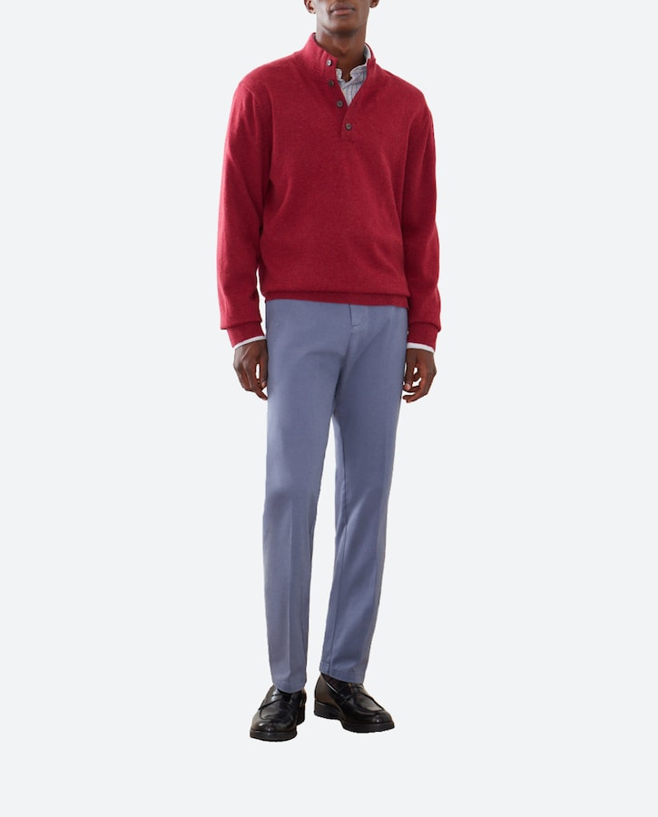 Jersey de hombre cuello semicisne liso con botones lana cashmere