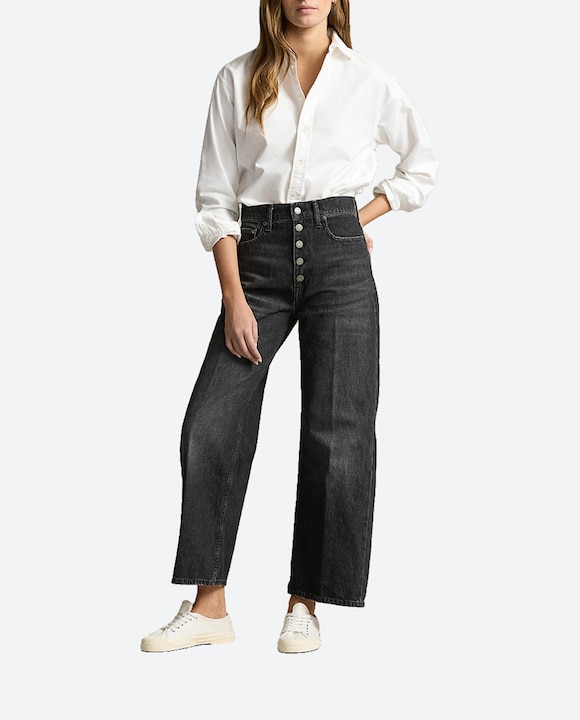 Vaqueros de mujer anchos de algodón de tiro alto
