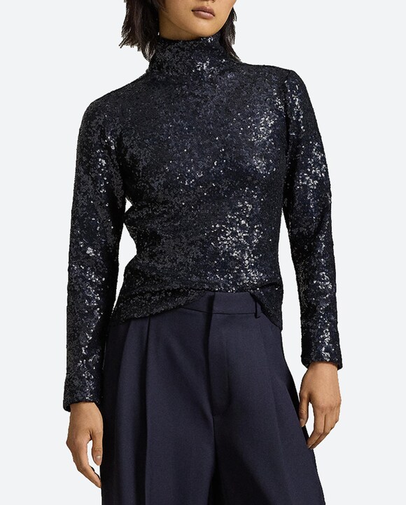 Top de mujer de cuello alto con lentejuelas
