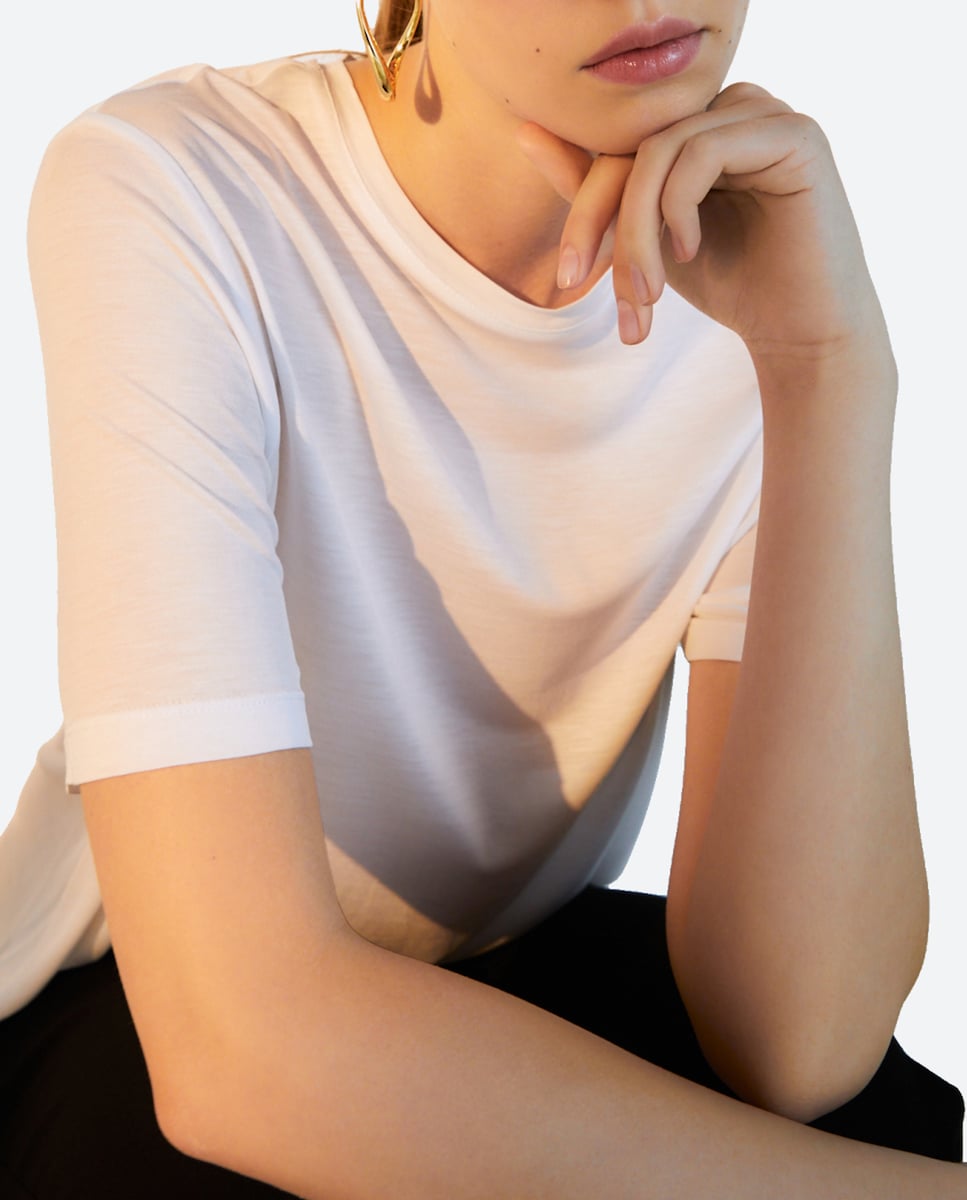 Camiseta de mujer cuello caja manga corta