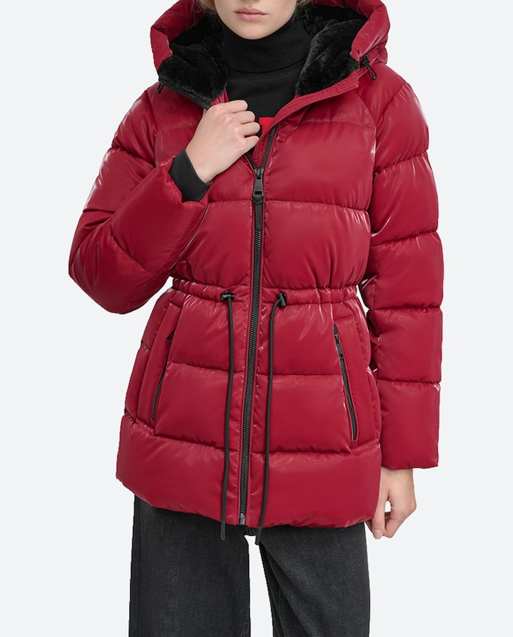 Plumífero de mujer con capucha y mangas largas