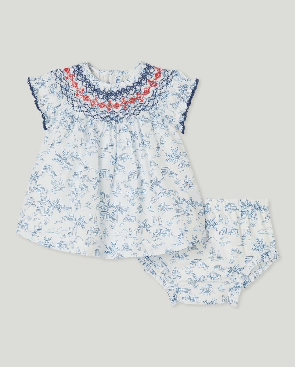 Vestido de bebé niña manga corta nido de abeja