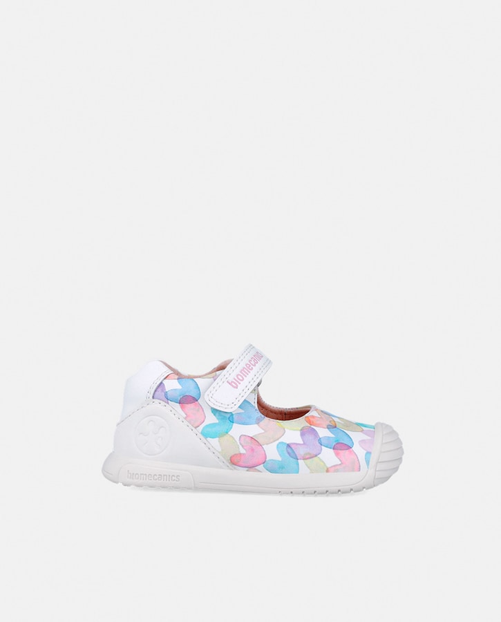 Merceditas estampada de bebé niña en piel con puntera redonda y reforzada
