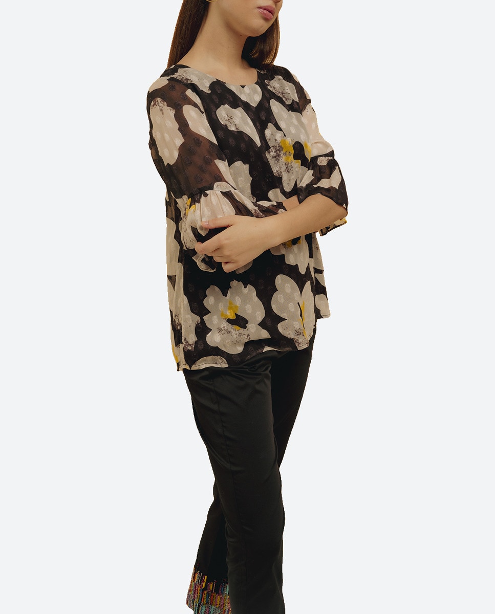 Blusa con manga corta y estampado floral de mujer