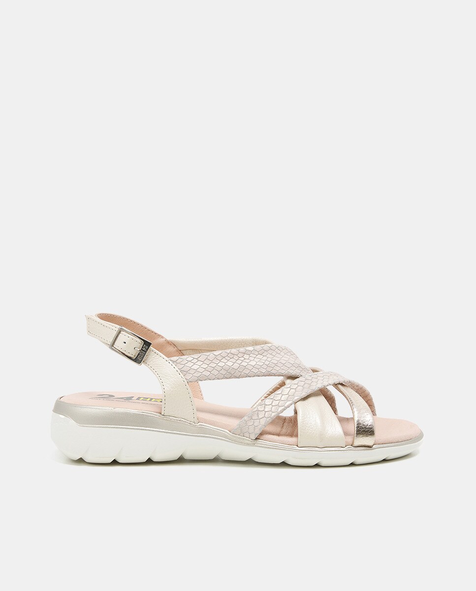 Sandalia de tiras en tonos blanco-plata