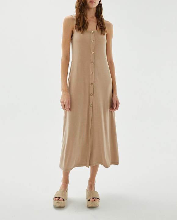 Vestido beige midi fluido botones de mujer
